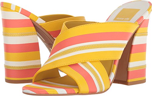 Product DescriptionVibrant stripes add bold, cheerful style to these leather Dolce Vita sandals. Covered block heel with textured rubber cap. Manmade sole.0