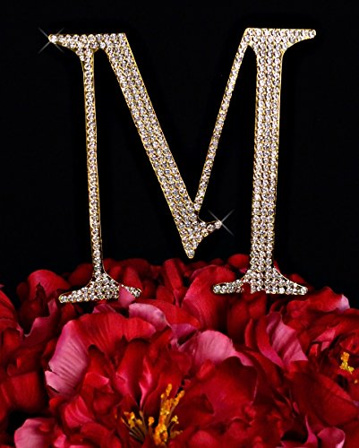 Unik Occasions Collection Crystal Rhinestone Letter-M Wedding Cake Topper, Small, Gold