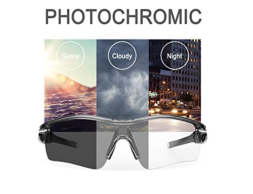 Features: ?Smart photochromic color change in sunny day, cloudy day, at room or night, one lens can easy coping. ?PC material lens, ultraviolet resistance UV400. ?Protection cyclist eyes from UV-400 UV (100% UV protection). ?3 sets of lens give more choice. ?With myopia frame, myopia lens can be put in. ?High quality polycarbonate, flexible, anti violet ray lens and durable frame. ?Environmental protection soft silicone adjustable nose pads.