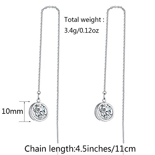 -. Feature : SIZE(important) AND MATERIAL: Cubic zirconia measures 10mm in diameter. Earrings' chain length 4.5 inches/11cm; Every single earring weights 1.70g/0.06oz. The metal we use is eco-friendly brass, Rhodium plated give it more shining surface. / DESIGN: Minimalism style is the main fashion point in this threader earrings. The cubic zirconia is flexible, not strongly inlay between to circles. / CRAFT: The cubic zirconia dangle earring was polished by our experienced craftsmen. Nicely cut cubic zirconia will bring more refraction and shine. / OCCASSION: The CZ drop earrings is appropriate gift for female. Suitable for friends, spouse, sibling and anyone you loved as wedding gift, anniversary gift, mothers' day gift, Valentine' s day gift or birthday gift. / SERVICE: 100% refund GUARANTEE if you are not satisfied with products. Please be free to contact us for any problem and question. We will offer high quality service and happy to listen to your suggestions.