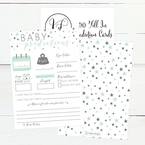 50 Mint Stars Advice and Prediction Cards for Baby Shower Game, New Mom & Dad Card or Mommy & Daddy To Be, For Girl or Boy Babies New Parent...