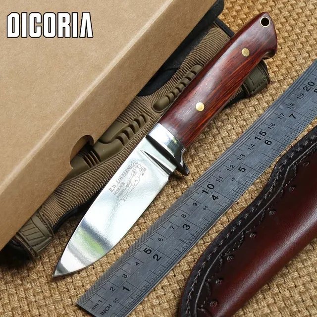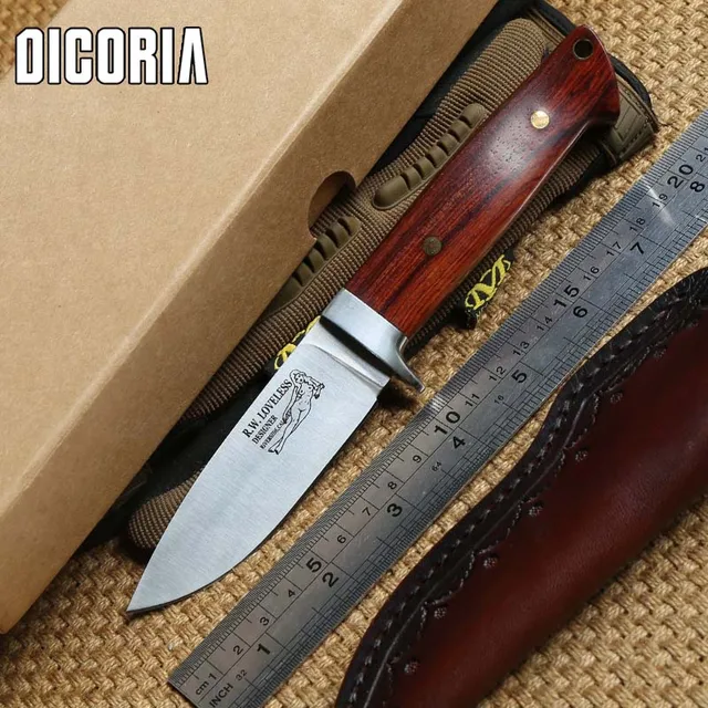 | [해외] DICORIA Loveless 9cr18MOV 블레이드 나무 핸들 고정 블레이드 큰 스트레이트 칼 칼집 캠핑 사냥 야외 EDC 칼 도구 |