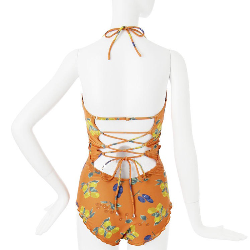 バックスタイルがおしゃれな花柄ワンピース水着です。