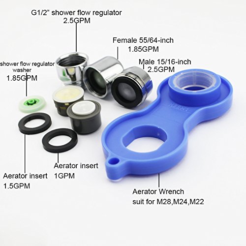 - 7 Packs:Female 55/64-inch-27 X 1,male 15/16 inch—27 X 1,G1/2” shower flow regulator X 1,shower flow regulator washer X 1,POM spray insert X 1,POM bubble insert X 1,Free ABS wrench X1