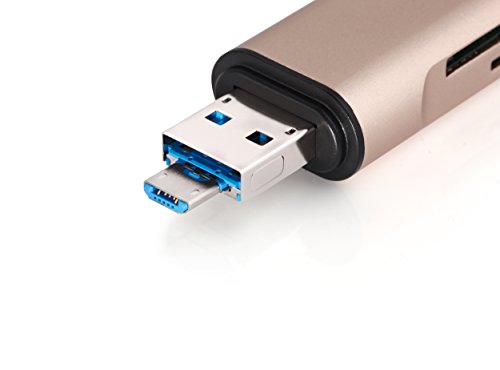 [New Release] SUPRENT CardCore USB-C, USB-A, Micro USB 3 in 1 TF/SD Card Reader (OTG Supported, Ultra-Fast Data Transfer) for the New Macbook, Chromebook Pixel, Nokia N1 and More (Gold Aluminum) B017VXAQXO