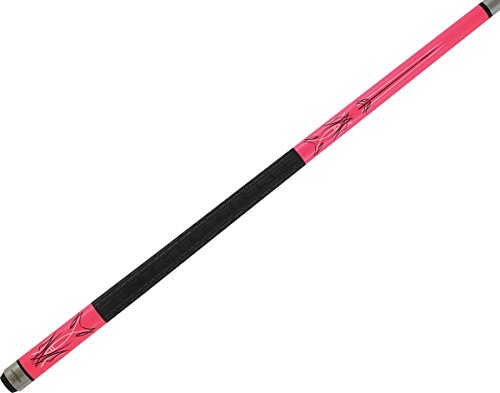 Studio : Action Publisher : Action Product Description 13Mm, 7 Layered vacuum sealed proprietary boar skin tip 1" Fiber linen ferrule 29" Hard rock maple, 10-12" pro taper with a brass insert Stainless steel Hot pink with a pin stripe black and white design Black rubber tire tread wrap Hot pink with a pin str 0