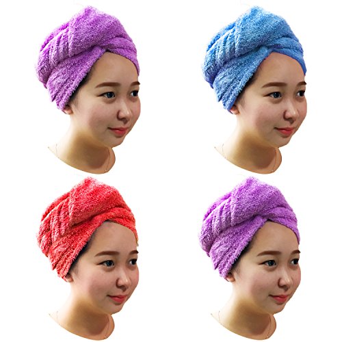 (LanGui)/Styling Tools/Styling Accessories/DIRECT FROM USA/Hair Towel - 4 PACK Microfiber hair drying towels Turbans Wrap Fast Dry Hair Cap Wrap Super Abs...