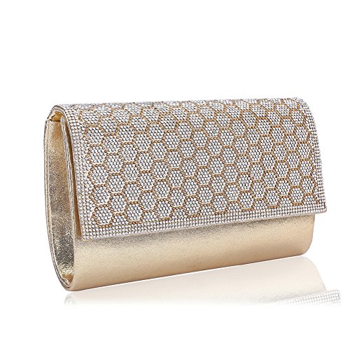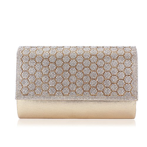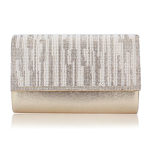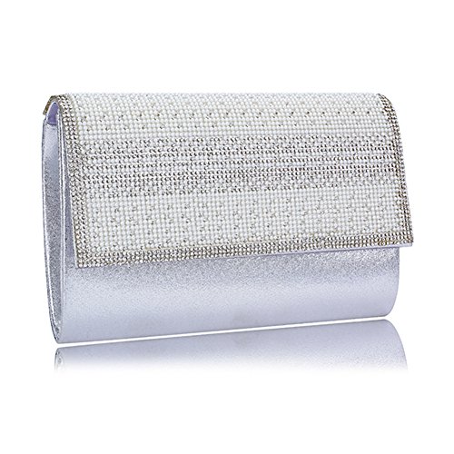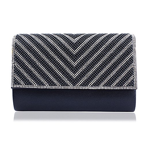 Elegant shinny fabric clutch evening bag with sparkling diamonds & pearl beads