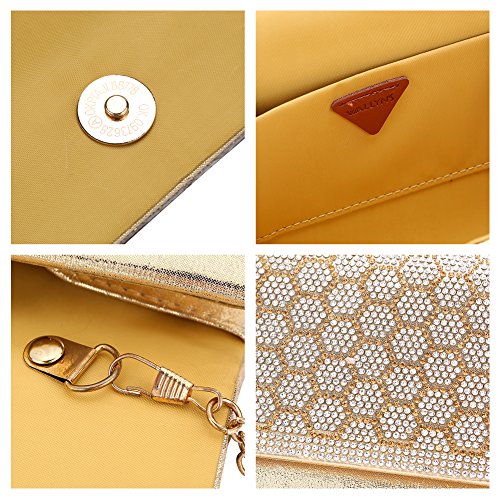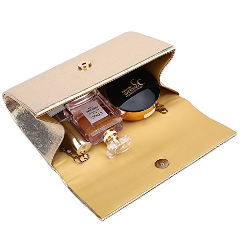 Inside can easily fit a cell phone, wallet, compact mirror, lip gloss, and a pack of gum. Conveniently, you can spend the night hands free with the detachable silver chain that is included.