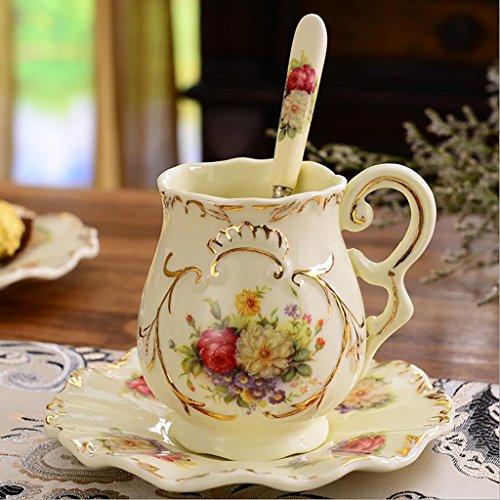 -. Title : QINQIN European ceramic coffee mug set vintage tea cups (4 cups 4 saucers 4 spoons)