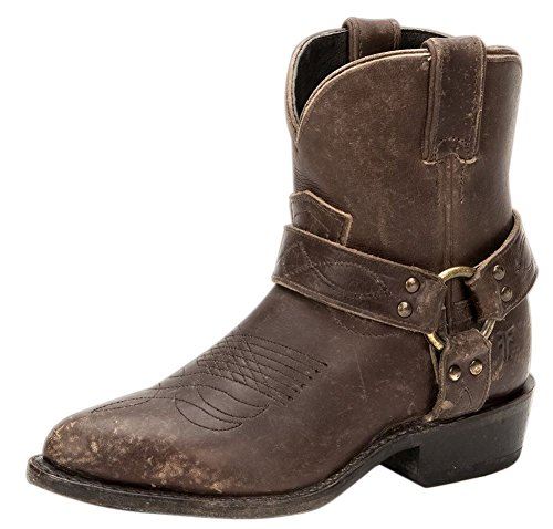 Studio : FRYE Publisher : FRYE Binding : Shoes Product Description Features a harness strap with metal hardware for a classic look. Sturdy leather pull loops for easy entry. Goodyear® welt construction offers long-lasting durability. Leather lining for a more comfortable next-to-skin feel. Cushioned leather footbed for all-day comfort. Stacked leather heel with distressed detail. Distressed leather outsole for excellent traction. Imported. 0