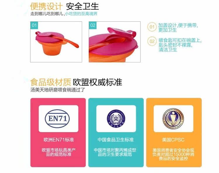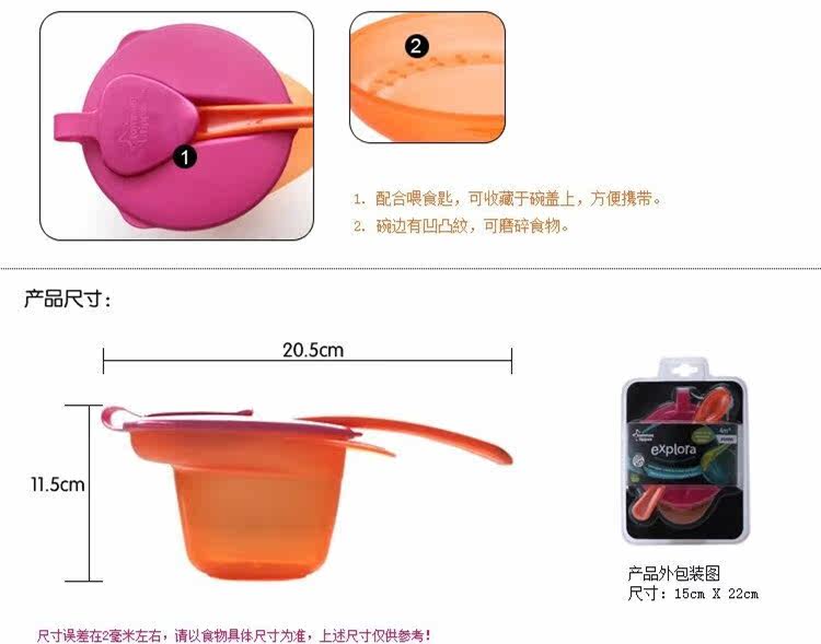 - 碗底三角形设计,容易舀出食物给宝宝。