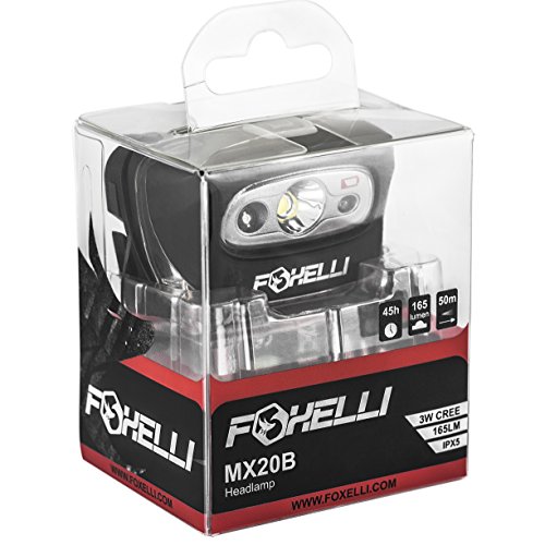 - Feature : ✔ SUPER BRIGHT CREE-3W LED TECHNOLOGY (60-meter beam) - wide variety of white & red light modes + 90° tiltable body makes this headlamp brightest and most versatile in its class. SOS and strobe mode + attached emergency whistle will keep you safe in any situation. / ✔ WATERPROOF AND DURABLE - why equip yourself with anything but the best and most reliable headlamp? MX20 is built to last. It is rated to IPX5, which means it is protected against splashing or spraying water from any angle. / ✔ LIGHTWEIGHT AND COMFORTABLE - you won't even notice wearing it. Weighing only 3.2 ounces (with batteries) with easily adjustable, ergonomically designed elastic headband makes this light perfect for long distance runners or anyone else looking for a comfortable fit. / ✔ SUPER LONG BATTERY LIFE - by using leading CREE - 3W technology MX20 provides more light with less power used, resulting in up to 120 hours of run-time. 3 AAA ENERGIZER batteries included. Each headlamp has been tested for quality and is ready for adventure! / ✔ 100% SATISFACTION, NO QUESTIONS ASKED MONEY BACK GUARANTEE - we are so confident you will love our headlamp that we offer money back guaranty with complete lifetime warranty. Click "ADD TO CART" button now and have your FOXELLI MX20 headlamp shipped today!
