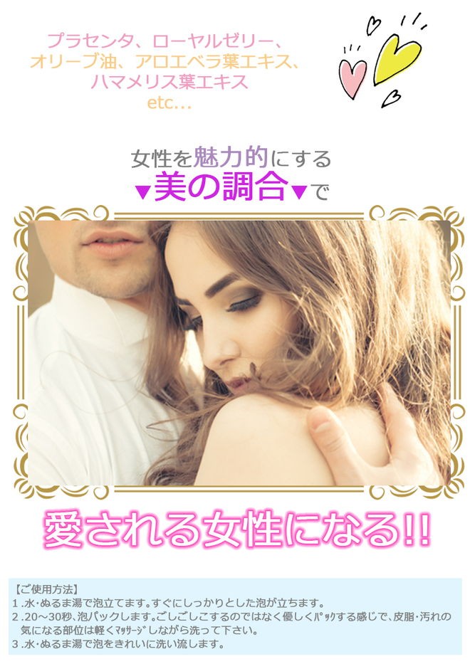 | ご使用方法 | 水またはぬるま湯で湿らせたタオルやスポンジ等に適量をとり、泡立てた後お使いください。その後十分に洗い流してください。 |