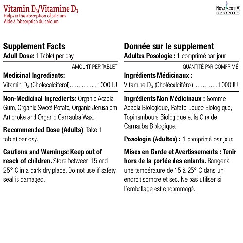 Are you feeling a little down lately or more tired than usual from your normal daily routine? Maybe you've tried to drink an extra cup of coffee in the afternoon, but instead of extra energy, you've gotten a dose of insomnia. What you may really be suffering from is a Vitamin D deficiency. More people than ever are finding out about how a lack of Vitamin D in your diet can cause various minor issues, like fatigue, irritability and premenstrual syndrome for women. That's why it's vital to have a top-quality Vitamin D supplement as part of your daily routine. The most common natural source of this vitamin comes from the sun, but everyone knows that sunbathing isn't exactly the healthiest habit to exercise each day. Most doctors agree that Vitamin D3 is the best out of all of the different varieties. Our D3 Vitamin from Nova Scotia Organics can help you get back your energy and feel more like yourself again. With 250% of the recommended daily value of D3 in each tablet, you'll start each day on the right foot with our high-quality supplement. That way, you'll give your memory a little boost each day and be less likely spend precious time during your morning routine looking for your car keys. This vitamin helps maintain neurotransmitters like memory builder acetylcholine. When it's dark and cold each day outside in the winter, you can keep your Vitamin D levels at their peak with regular supplementation of our product. Medical providers recommend this vitamin to provide your body with optimal levels of mood-boosting hormones serotonin and dopamine. It's also an important piece in your body's ability to absorb calcium, which gives you the best way to have strong bones and healthy teeth. This essential nutrient can help you start to feel stronger and be your best self each day.These statements have not be evaluated by the Food and Drug Administration. This product is not intended to diagnose, treat, cure or prevent any diseaseFeature