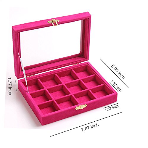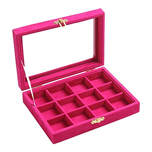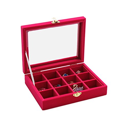 New Wayzon 12 Grids Jewelry Holder Organizer Box Storage Case Earrings Rings Disply with Lock for Women Girls (Rose)
