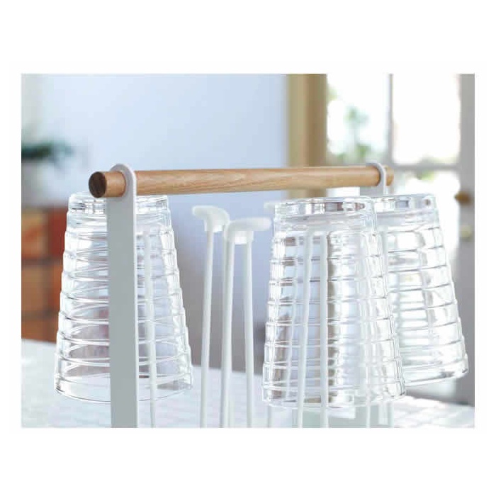 ■tosca / 토스카 글래스 스탠드 새하얀 스틸에 우드가 자연스러운 온기를 편성,키친을 북유럽풍으로 연출해 준다「 tosca( 토스카 )」시리즈.글래스를 씻은 후,맛을 행주나 think로 붙이는 일 없이 말릴 수 있기 때문에 매우 청결.게다가(더구나) 그대로 두는 상태 으로 해도 그림이 되는 아이템입니다.직경7cm,높이15cm까지의 글래스를 6 개수납에 옵니다.