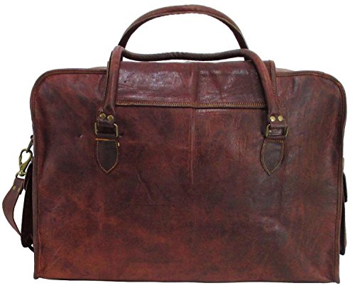 -. Title : 21" Mens Retro Style Carry on Travel Lage Flap Duffle Vintage Leather Duffle Bag