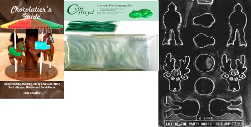 Cybrtrayd Stack Reindeer Chocolate Mold with Chocolatier's Bundle of 25 Cello Bags, 25 Green Twist Ties and Chocolatier's Guide