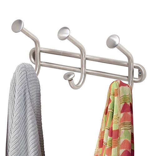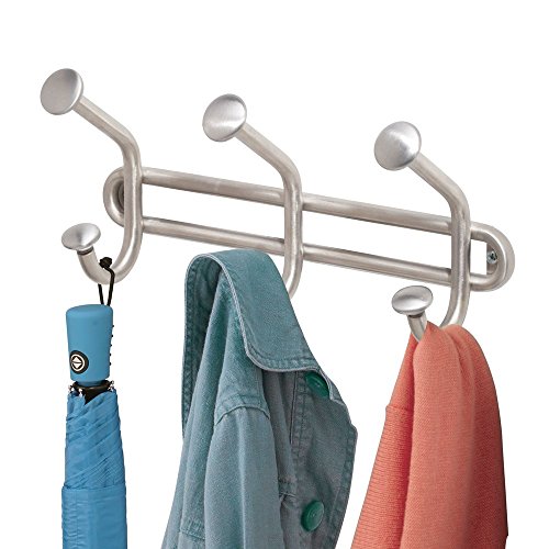 InterDesign Forma Wall Mount Storage Rack – Hanging Hooks for Jackets, Coats, Hats and Scarves - 3 Dual Hooks, Brushed Stainless Steel
