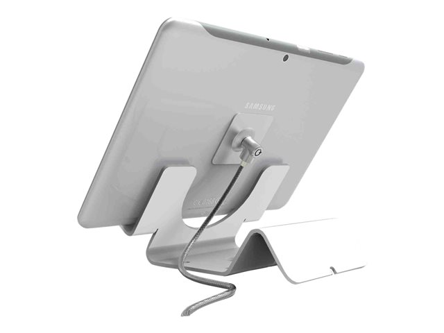 UNIV SEC TABLET HOLDER WHT - W/SEC CABLE LOCK/PLATE Universal Security Tablet Holder White - With Security Cable Lock and Plate - 1" x 5"5" - Aluminum, Metal - White