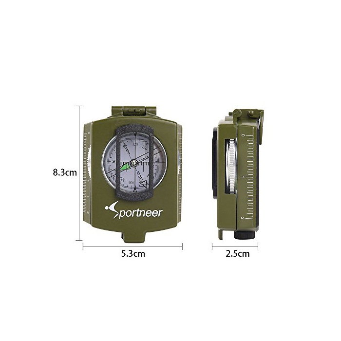Sportneer 방위 자석 방위 자침 kompas 축광 밀리터리 군용 모델 접는식 경량 방수 콤팩트 아웃도어 등산 방재 하이킹 용