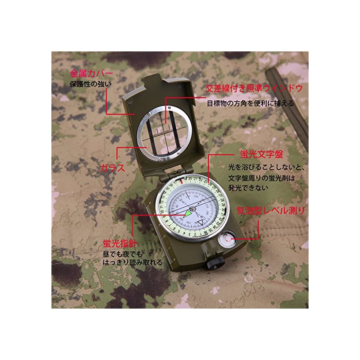 군용 kompas:경량,소형,고정밀도 오일식 kompas입니다.위도와 경도 계측에 옵니다,자동차에 탄다,보트,캠프,등산,탐험,수렵이나 다른 아웃도어에 최적입니다.