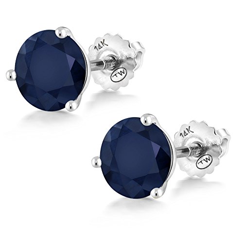 -. Title : 2.00 Ct Round 6mm Blue Sapphire 14K White Gold Martini Setting Stud Earrings