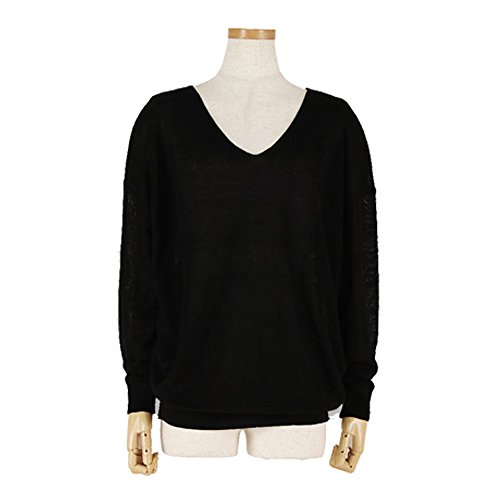 -. Title : やわふわ片畦編みVネックニット(k-gl5457) (M, ブラック) [並行輸入品]