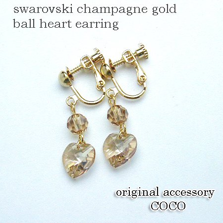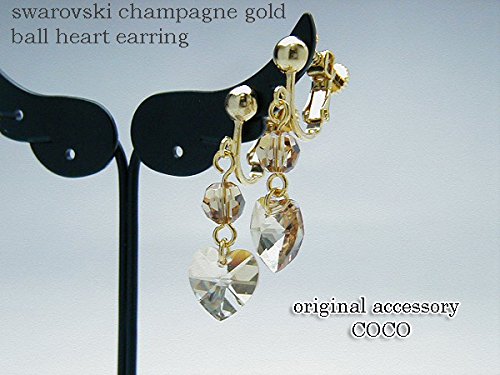 아뜰리에 자《스》 스와로브스키 샴페인 골드 볼 하트 귀걸이 레이디스 골든 섀도우 롱 #등이다 꾸중 반짝반짝 파티 수작업 일본제 귀 링 swarovski