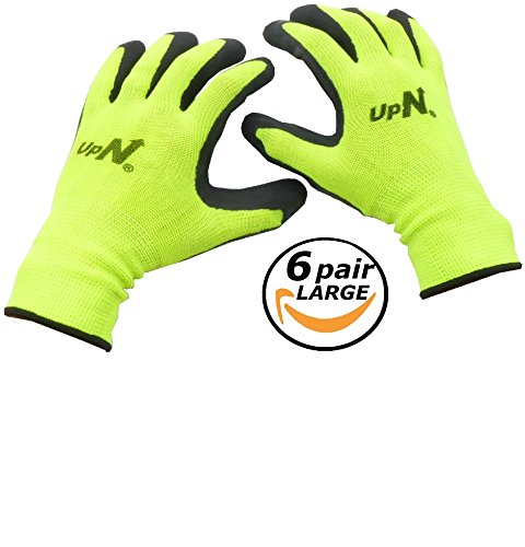 UpNorth 13 Gauge Polyester Knit Work Gloves, Textured Rubber Latex Palm Dipped/Coated for Construction, 6-Pairs, Men's Large