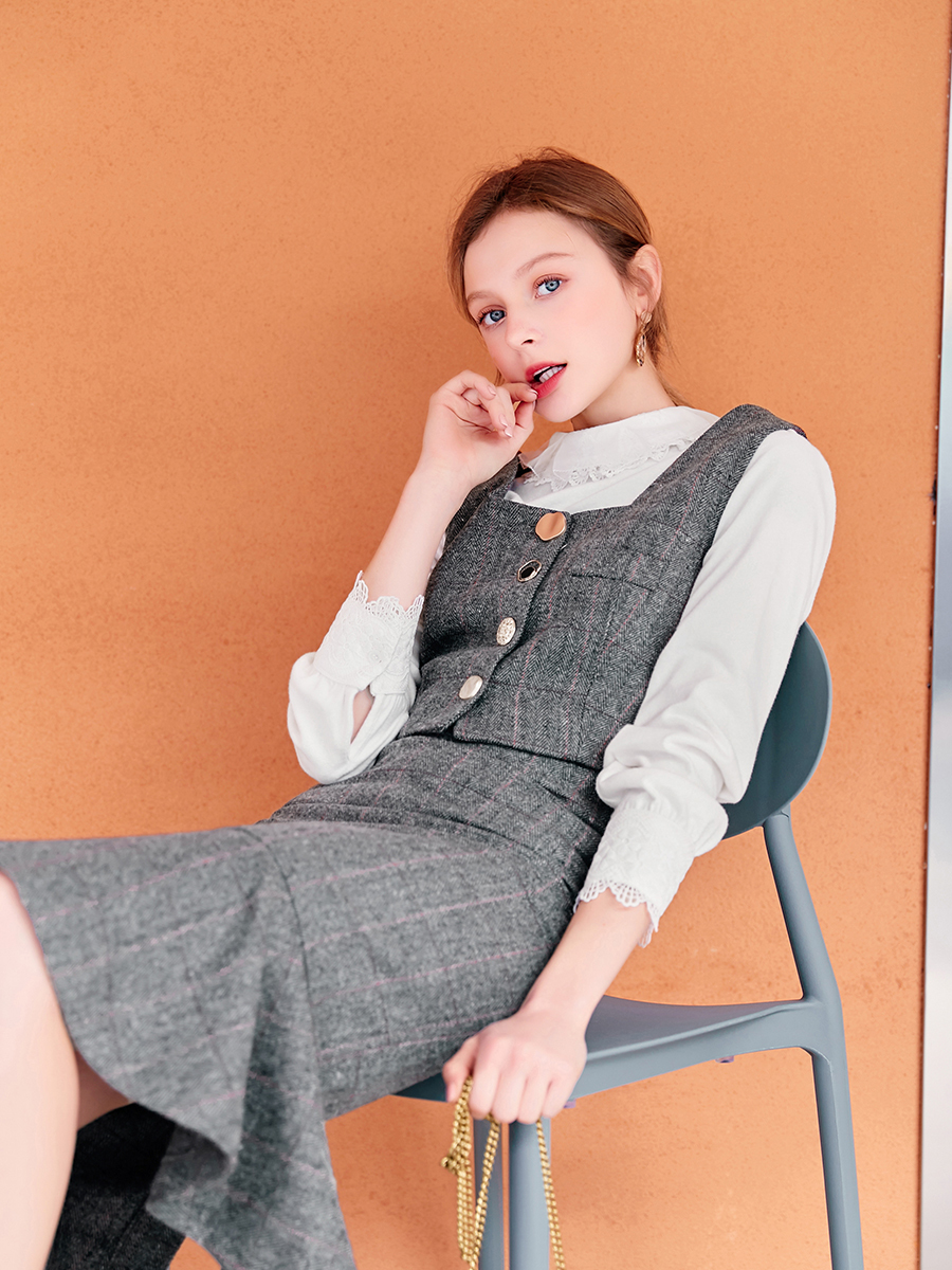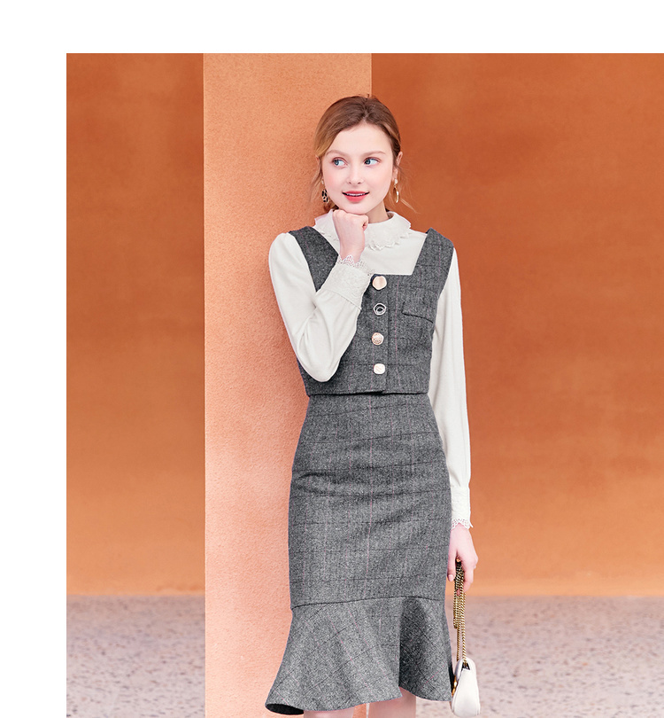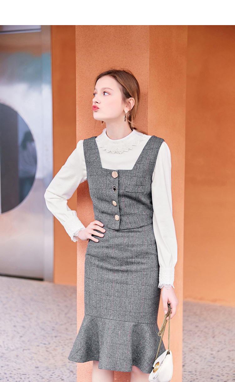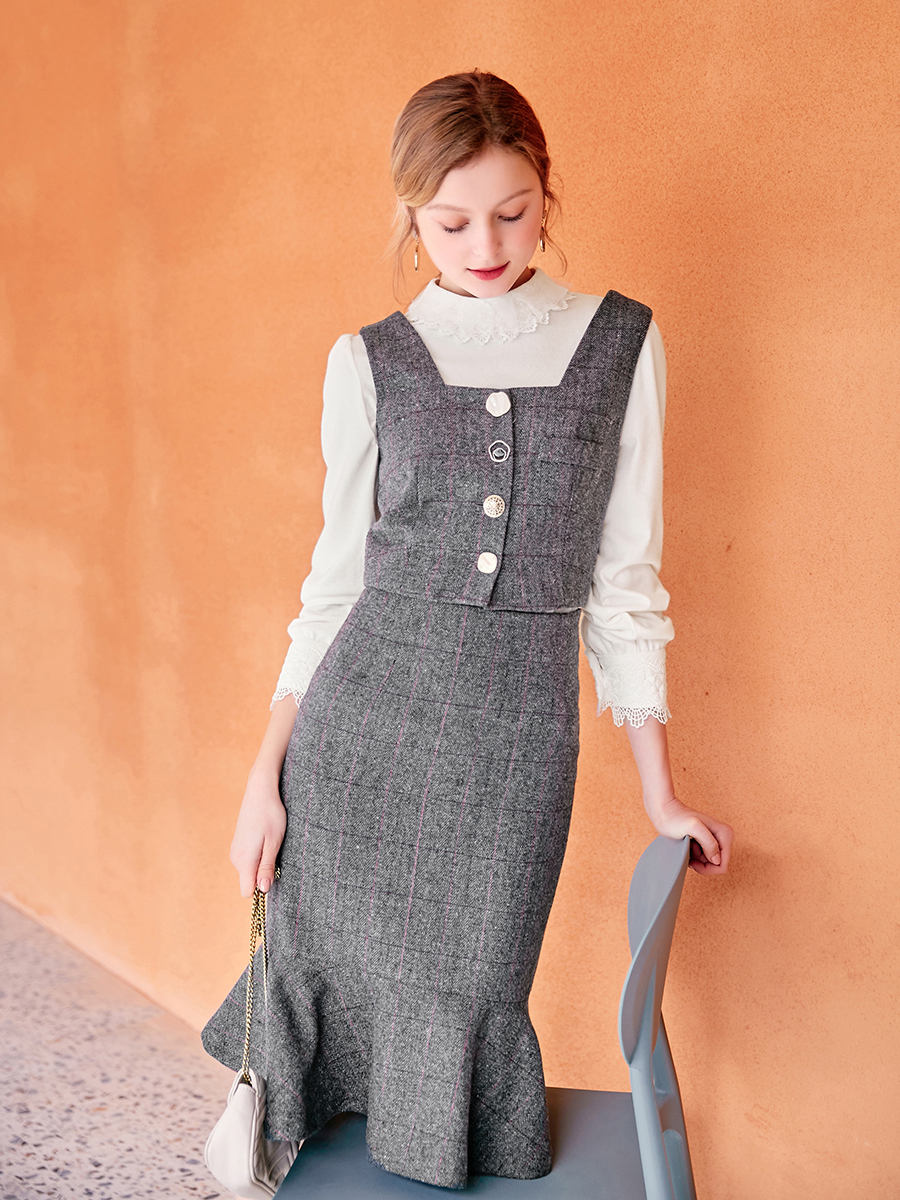 スカートはハイウエストで足長効果が期待でき、フィッシュテールが存在感を発揮。