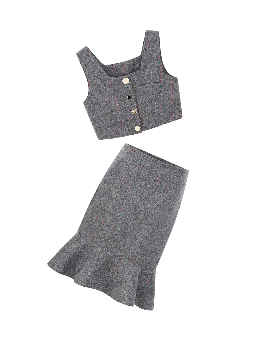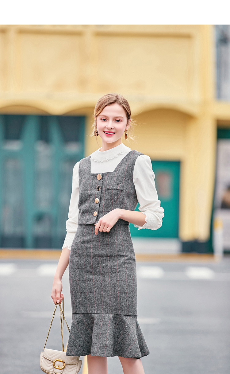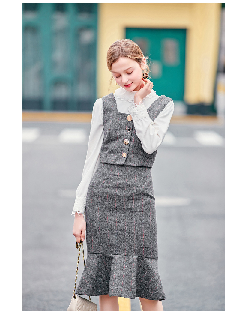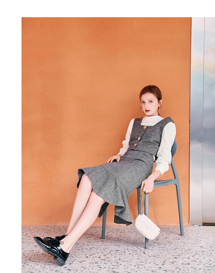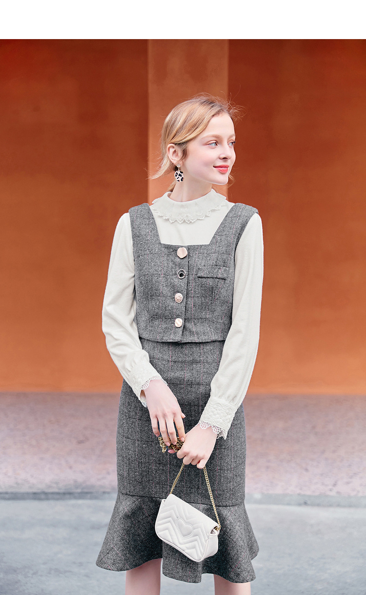 スカートはハイウエストで足長効果が期待でき、フィッシュテールが存在感を発揮。