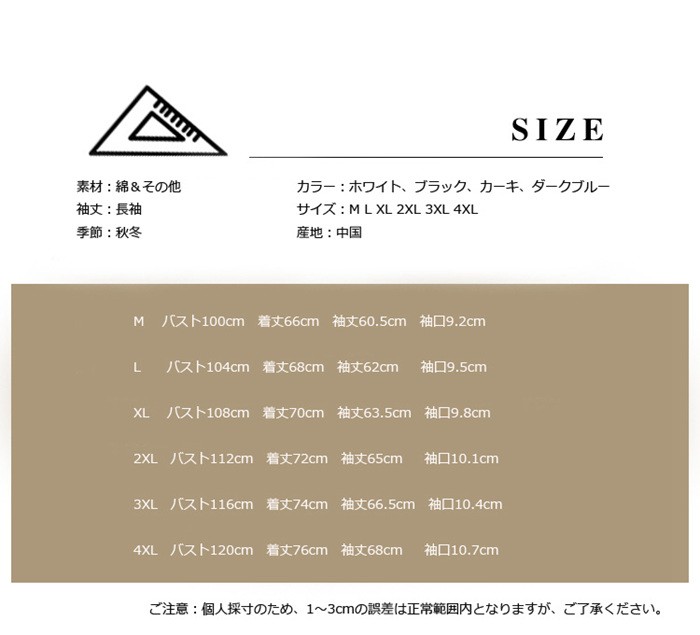ジップアップパーカー メンズ 無地 トップス カジュアル コート ショート丈 春アウター 全4色 欧米セレブ愛用 2018秋冬新作 ジップアップパーカー メンズ 無地 大きいサイズ アウター商品詳細素材:綿&その他袖丈:長袖季節:秋冬カラー:ホワイト、ブラック、カーキ、ダークブルーサイズ:M L XL 2XL 3XL 4XL産地:中国サイズ参照表M バスト100cm 着丈66cm 袖丈60.5cm 袖口9.2cm L バスト104cm 着丈68cm 袖丈62cm 袖口9.5cmXL バスト108cm 着丈70cm 袖丈63.5cm 袖口9.8cm2XL バスト112cm 着丈72cm 袖丈65cm 袖口10.1cm3XL バスト116cm 着丈74cm 袖丈66.5cm 袖口10.4cm4XL バスト120cm 着丈76cm 袖丈68cm 袖口10.7cmご注意:個人採寸のため、1~3cmの誤差は正常範囲内となりますが、ご了承ください。ジップアップパーカー メンズ 無地 トップス カジュアル コート ショート丈 春アウター 全4色 欧米セレブ愛用 2018秋冬新作 ジップアップパーカー メンズ 無地 大きいサイズ アウター