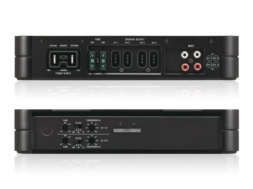 Features and SpecificationSPECIFICATIONSCEA-2006 Power Ratings * CEA-2006 Power Rating: (4/2 I?@14.4V Ƈ%THD+N), S/N 98dBA (Ref. 1W into 4 I?): 100w x 4RMS Power Ratings * Per channel into 4 Ohms: (@14.4V Ƈ%THD+N) 100W x 4 * Per channel into 2 Ohms: (@14.4V Ƈ%THD+N) 100W x 4 * Bridged 4 Ohms: Bridged into 4I? (Ƈ%THD+N) 200W x 2Sound Tuning * Crossover: Variable, 30-400Hz (-12dB / oct ), Low-Pass/High-Pass /OFF SelectableDimensions * Heat Sink (WxHxD) mm: 257mm x 192mm x 50.8mm * Heat Sink (WxHxD) in: 10-1/8'' x 7-9/16'' x 2'' General * Power Requirements: 14.4V DC (11V to 16V) * Input Sensitivity: 0.2V to 4.0V (For Rated Power) * Cable size: 4 AWG (BATT and GND), 12 AWG (Remote), Up to 8 AWG (Speaker) * Frequency Response: 5 Hz - 100 kHz / 0dB ~ -3dB (Reference: 1 W into 4 ohms