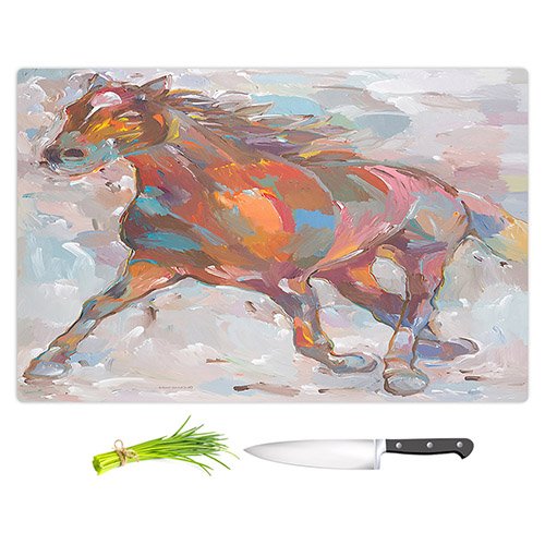 DiaNoche Designs CB-HooshangEquineAdvanceHorse2 Hooshang Khorasani Equine Advance Horse Unique Kitchen Slicing Dicing Bar Artistic Decorative Cutting Boards from, Large 15" x 11"