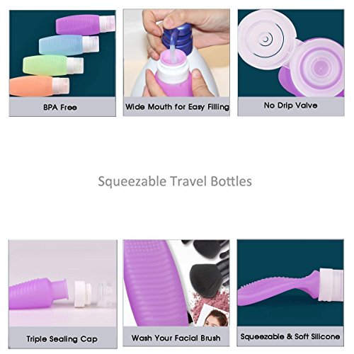 UTRO Portable Leak Proof Soft Silicone Travel Bottles Organizers Travel Containers for Shampoo Conditioner Cosmetics Toiletry Lotion With Washing Function, set of 4 (1.6oz / 48ml)