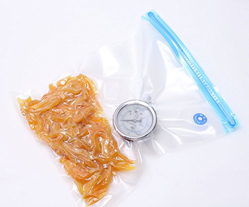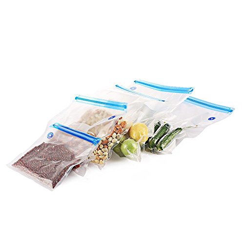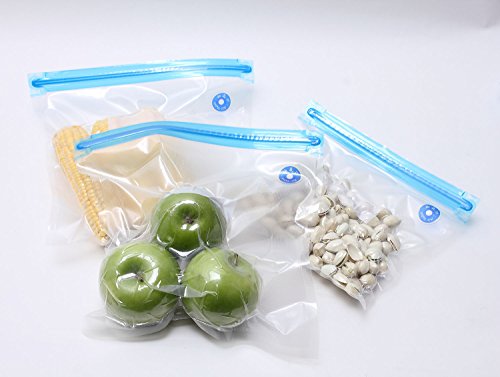- EXCELLENT SEAL PERFORMANCE - Reinforced double zipper ensures an airtight seal, strong, multi-ply material keeps all the food being fresh up to 5 times longer. And we offer a free clip for each handy food vacuum sealer to help you seal the bag easily.