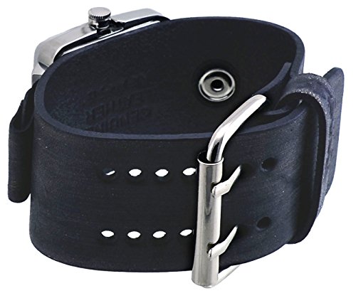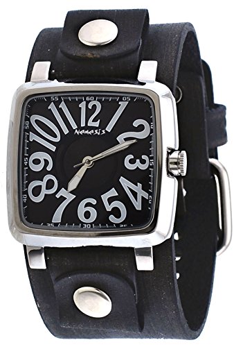 Nemesis #NFBB218BK Sqaure Big O Numbers Black Dial Wide Leather Cuff Band Watch