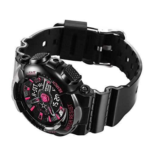 46 mm black and pink case with acrylic dial window and 18 mm soft and light strap