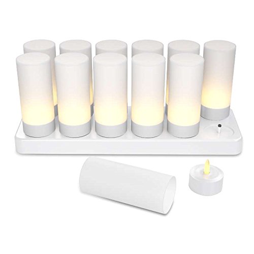 Expower Rechargeable LED Flameless Candles Tealight Candles With Base(Set of 12) (Yellow-color Candle)