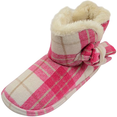 Binding : Apparel Product Description Ladies / Womens Tartan Style Ankle Slipper Boots / Booties with Faux Fur Inner. Sizes: 5 - 10. Fleece Outer with Soft Faux Fur Inner for Warmth and Comfort. Hardwearing Non Slip Rubber Sole. Tartan Design with Bow. 0