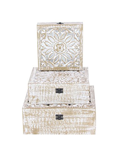 Deco 79 96097 Carved Mandala-Designed Wooden Parquet Boxes, White/Black