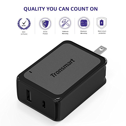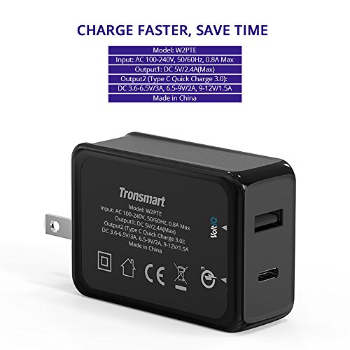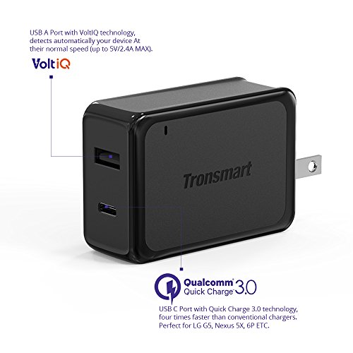 This incredible next-gen multi-port wall charger is compatible with the brand new cutting edge QC3.0 standard from a USB Type-C port while utilizing Tronsmart's class-leading VoltIQ Adaptive Charging Technology for USB port (up to 3A max) for a comprehensive best of both worlds car charging solution. The future-proof USB Type-C port delivers ultra-efficient smart adaptive charging with incremental outputs of 3.6-6.5V/3A, 6.5-9V/2A, and 9-12V/1.5A. USB Type-C Compatible models Google Nexus 6P,Nexus 5X (5V/3A)