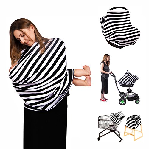 MULTI-USE COVER: Can be used as a car seat cover, nursing cover, and shopping cart or highchair cover.It provides full and adequate coverage for worry-free nursing wherever you are. While you are shopping, this cover protects your little one from germ infested shopping carts, providing a great alternative to using antibacterial wipes every time you go to the store.