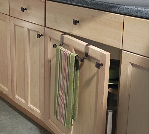 - Feature : Over cabinet towl bar hangs over kitchen or bathroom cabinet door / Stores and organizes hand towels, dish towels, pot holders and more / Easy installation - No hardware required / Made of steel with rust-proof white finish / 9.75" x 2" x 6.25"