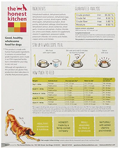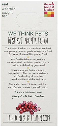 Zeal is a fish based dog food recipe and is made with an uncompromising selection of human grade, wild caught fish and whole foods. Zeal doesn't contain flaxseed, white potatoes grains or gluten, which are less common allergens, so it's close to a hypoallergenic dog food. It's AAFCO complete and balanced for adult maintenance. Zeal is a grain-free dog food recipe created especially for sensitive adult dogs. Zeal is high in protein and low in fat, so it's ideal for dogs who have dietary restrictions, like pancreatitis. Zeal is made with Ethoxyquin-free line-caught Haddock, wild Whiting and wild Salmon. This Icelandic Haddock is wild caught using a line and hook, in the cold clean waters off the coast of Iceland. This Blue Whiting is wild-caught in the waters of Scandinavia and the Arctic. It is one of the most abundant fish stocks in the semi-pelagic water masses of the northeast. Just add warm water, wait 5 minutes, and serve for a fresh, wholesome and human grade meal. Zeal is 100 percent human-grade pet food, made in the USA, and contains no red flag pet food ingredients like corn, soy, rice, beet pulp or wheat. Ingredients are dehydrated white fish, sweet potatoes, eggs, organic coconut, alfalfa, apples, pumpkin, parsley, cabbage, bananas, wild Salmon, cranberries, garlic, tricalcium phosphate, choline chloride, zinc amino acid chelate, vitamin D3 supplement, vitamin E supplement, potassium iodide, potassium chloride, iron amino acid chelate, copper amino acid chelate. Contains minimum 35.5 percent crude protein, minimum 8.5 percent crude fat, maximum 5.8 percent crude fiber, maximum 8.9 percent moisture, 437 calories per cup.Feature