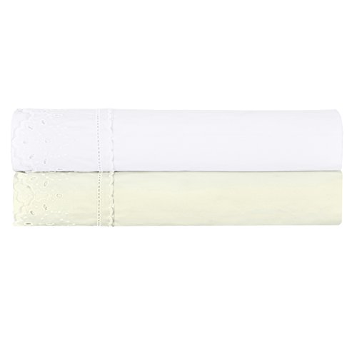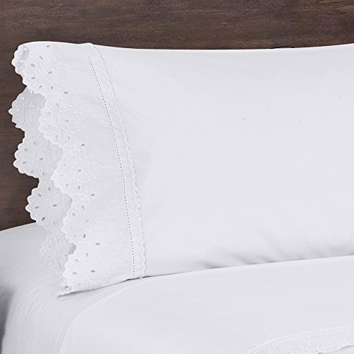 Five Queens Court Eyelet 2-Piece Pillow Case Set, Ribbon Trim, Embroidered, 100% Cotton, Standard, White