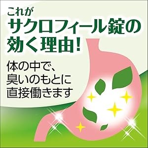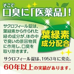 사쿠로필 정제는 엽록소로 만든 녹색 성분이 몸에서 냄새의 원인 물질로 작