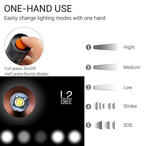 - MUL-TIFUNCTIONAL: DULEX CREE XM-L L2 LED Flashlight is a very nice multifunctional flashlight. around the house, for your vehicle, while hiking, camping, or backpacking this is an excellent option.